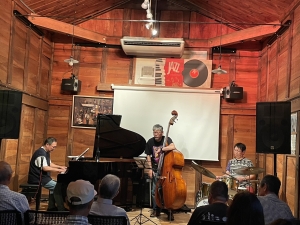 鶴岡で活躍するジャズピアノトリオ「有地トリオ」による生演奏。